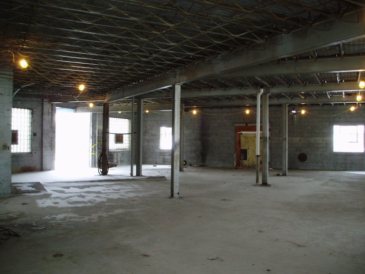 walls, door openings, etc. are still evident. The exterior windows are mostly glass block infill, some with view